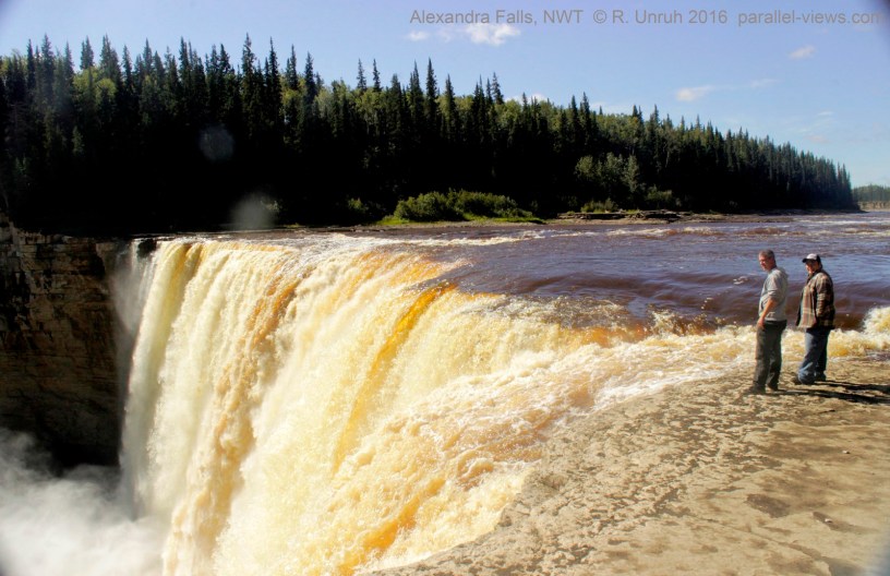 The first waterfall, Alexandra Falls, is about 70 km north of the Alberta Border. A photo of it is at the top of this post, and I’m going to focus on it in my next post. Following the Hay River downstream from Alexandra Falls, a short hike(or an even shorter drive) takes you to the strangely shaped Louise Falls…