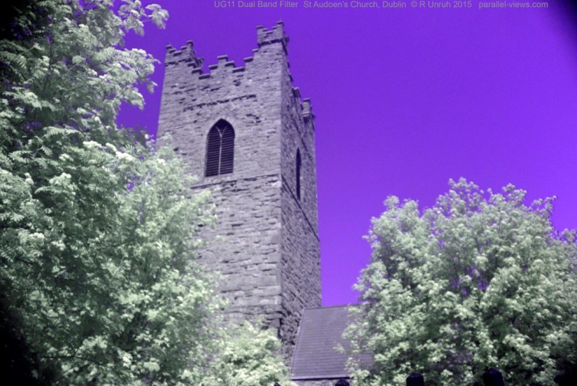 The Church tower dates from the 17th century, and was what drew me to the church. I took photos of it both in the visible spectrum, and with my UG11 filter(which eliminates the visible spectrum, and allows the ultraviolet and infrared spectra to pass through the filter).