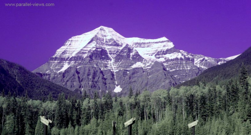 Combining my Schott BG40 and UG11 filters gives an ultraviolet view of Mt Robson.