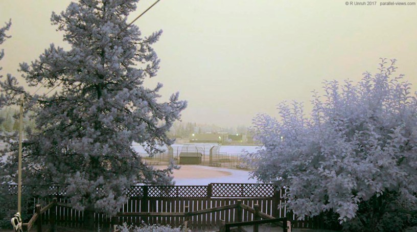 That title doesn’t work anymore; this isn’t just a hazy day; We’re WAY beyond that. The sky is faintly brown/red, but mostly it’s just dark. An ‘hour after sunset’ level of dark. And I’m not ‘cutting through’ the haze anymore; nothing is cutting through this smoke. The sun officially rises before 6:00, but it doesn’t feel like it.