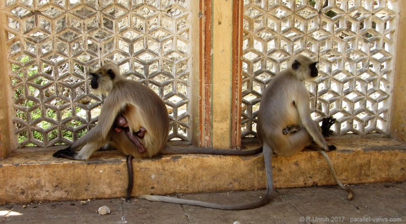 It’s been a couple of years since I went there. The young macaque has probably learned how to climb the wall, and now sits on the ledges looking over the pools and complex at Galta Ji.