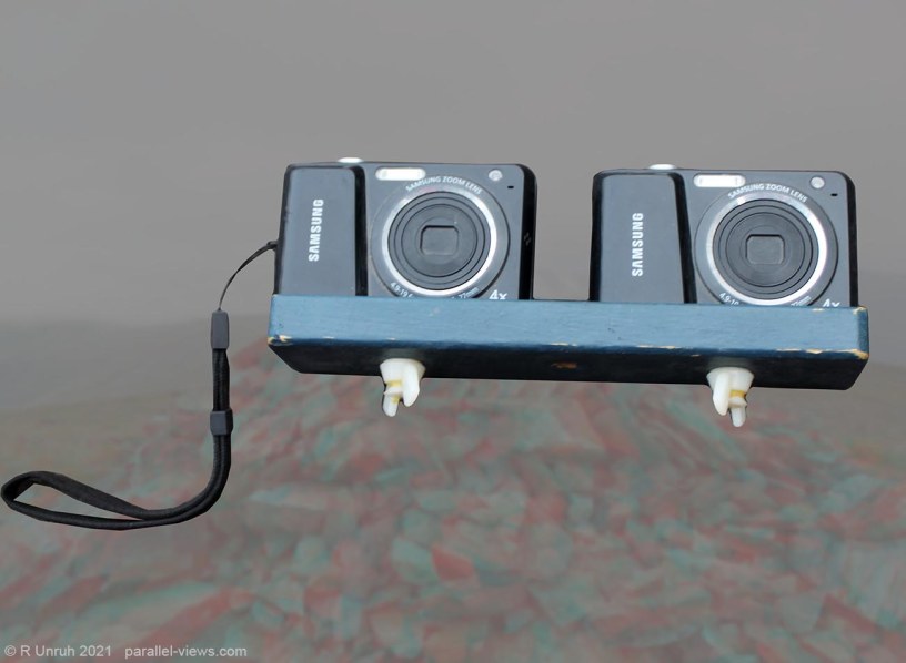 My parents had a Victorian-age stereoscope with a few cards; by viewing the cards, I figured out the principle behind it, and in 2007, made my first 3D images by playing around with different layers on software. To put break it down into the most basic explanation; you need two photos. One is intended for the left eye, and I will refer to it as ‘left photo’. The other is intended for the right eye, and I will refer to it as ‘not-left photo’. You don’t need two cameras, just one camera that can move position slightly. Most cameras can be moved, so it isn’t a big hurdle to overcome. The rest is just figuring out how to get each photo to be seen by the correct eye, and only the correct eye. So, in 2008, I tried my hand at making 3D images with my one camera. It went well, so I did more, and eventually it became a hobby/obsession. By 2010, I was regularly taking 3D photos with a single camera. There were problems with that, as quickly became apparent. Using a single camera worked for photographing a still object in 3D, but not a moving one. Moving objects would appear in different positions in the left and right images, and wouldn’t line up when the photos were combined. And, as I took more photos, I realized that there were a lot more moving objects that I’d thought of. Clouds, water, plants blowing on cloudy days, etc. This was before 3D became a big thing again, and dedicated 3D cameras weren’t cheap. no, If I wanted to get reliable 3D photos on a budget, I needed to make something myself. I needed a second camera.