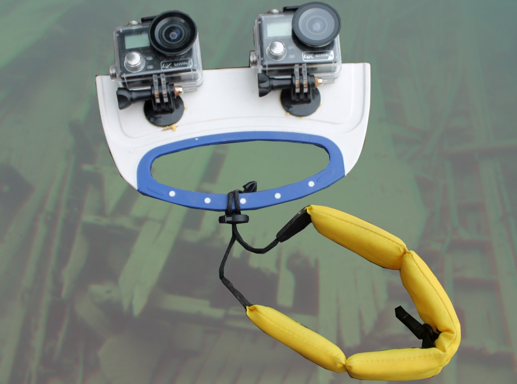 Another reason for a redesign is that I found my ‘landlubber’ style camera rig didn’t translate to underwater photography very well. The 3.1 setup was awkward to hold while actively swimming; I couldn’t just let it dangle off my wrist, as it would severely inhibit my swimming, and if I held onto it, the only good place to grip onto was one of the cameras. I often would accidentally turn the camera on and take photos of my blurry hand, and also put more force on the camera than recommended(note: this doesn’t apply to the weaker half of ‘pieces of $%!&’, as the camera died within a minute of going in the water while I was still walking waist-deep). Worst case scenario, holding the camera like that might result in the watertight seal being opened. Instead, I incorporated the cutting board handle into the new design, making it into a camera handle. The wristband is now connected to the handle instead of the cameras, both to reduce the force on the cameras, and because there is no way to attach them. Yes, I reused my faded yellow floating strap, and that strap has now outlived two cameras, the manufacturer of the first camera it was attached to, and the company that sold it to me.