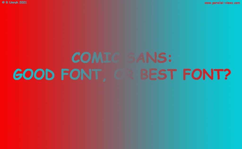 Ignore that text; that’s just some subliminal messaging techniques I’m testing completely random examples of text I was using for no purpose. Instead, just look at the colours. It is strange to see them through the glasses. It appears to be almost greyscale, but shimmery; which side is white and which side is black? It all depends on which eye you use. Look at it again with the glasses; this time, close an eye. Now the other eye. Now, a couple questions. what side is light, and what side is dark? Also, do you have any feelings on your preferred font types?