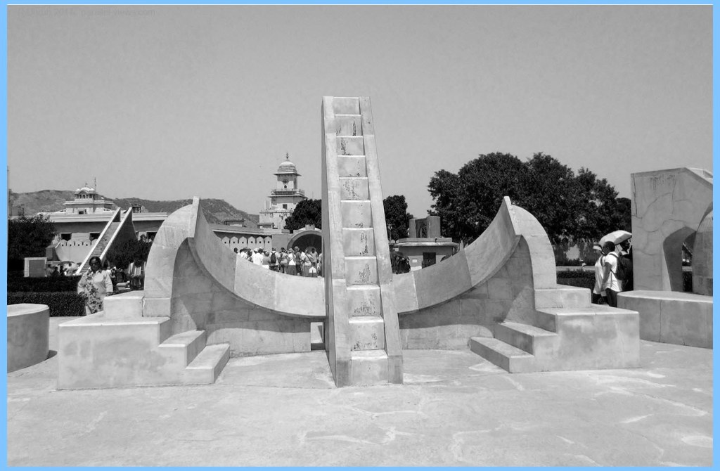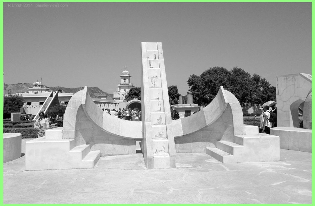 Here’s the other Rama Yantra. In front of it is another instrument I didn’t talk about last time, the Chakra Yantras. From what I understand, the Bar through the circle points north. In the centre of the bar is a hole; a sighting tube can be placed in the hole and rotated; the position on the circle will tell what degree it is at. It is used to find the angle of inclination and declination for planets and stars and…