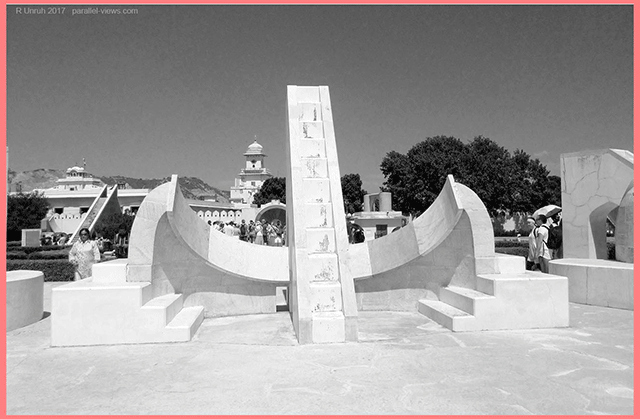 I think it’s the same stone as the Samrat Yantra, but maybe at least from a different quarry. The walls of the Samrat Yantra are painted, but the dial isn’t, and it seemed slightly of a different shade. It looks like a lot of the instruments are made of marble, and for ones that aren’t, the portion designed to be read is of marble too.