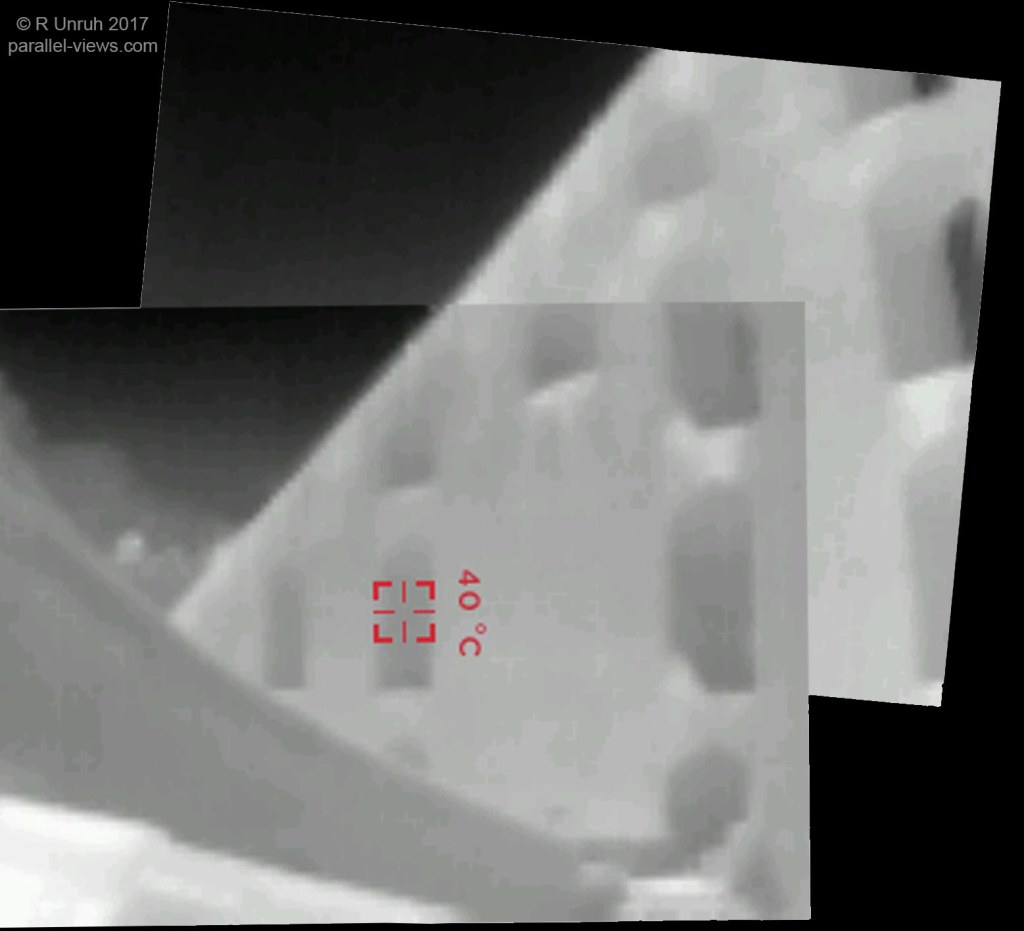 I took this with my Seek Reveal thermal camera. Unfortunately, it has a fixed focal length, so no zooming in or out. I took two photos, and just tried to align them.