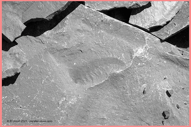As I said, I didn’t have my full complement of photo filters with me, so decided to bracket the fossil photo with one filter above and one below the visible wavelengths.