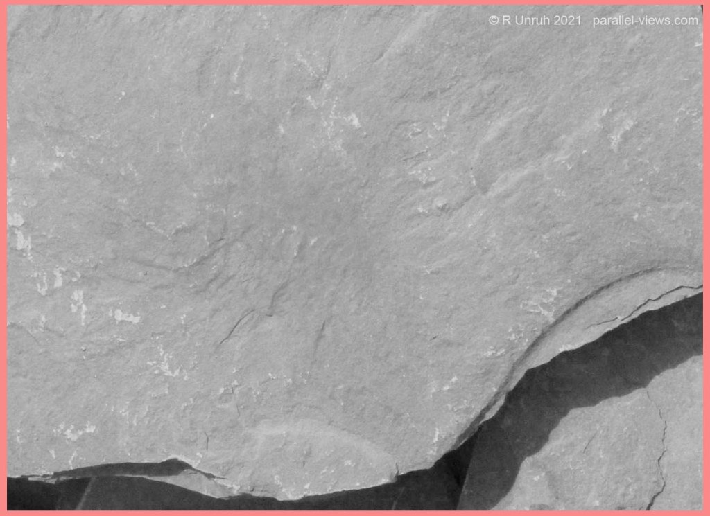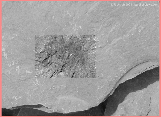 Even enhanced, the fossil isn’t really visible in any of the photos; at most, it is noticeable due to the slight change in the texture more than any different gradient. Here’s the GIF: