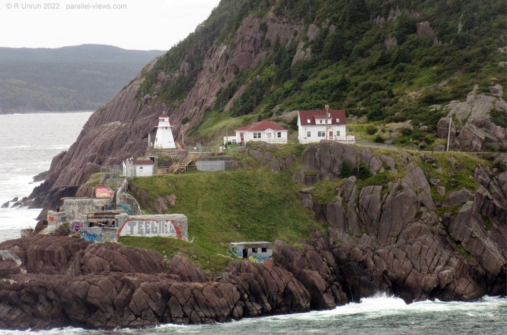 Right at the lighthouse, the shoreline to the south is visible, all the way down to Cape Spear(another lighthouse).