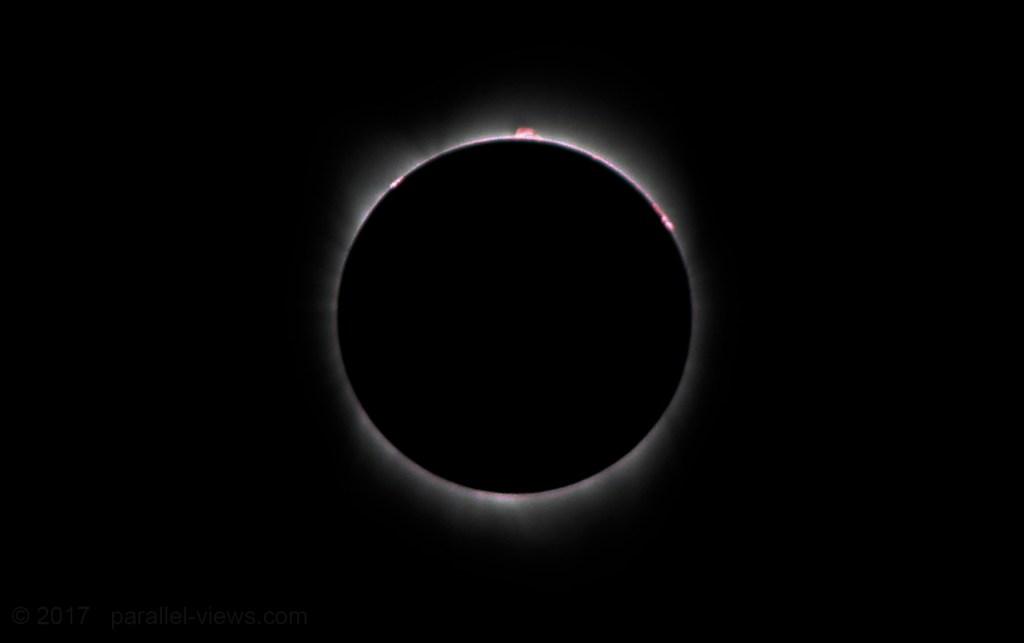 It’s there. There’s clearlay a large one at the top of the eclipse, and one on each side. It’s there, and looks similar to the 2024 prominences. But again, I don’t remember seeing it then, and I definitely saw it this time. I think because maybe the eclispe was dimmer this time. I think maybe the corona was too bright. It might have been dimmer this time because of the cloud… but there may be another reason too.