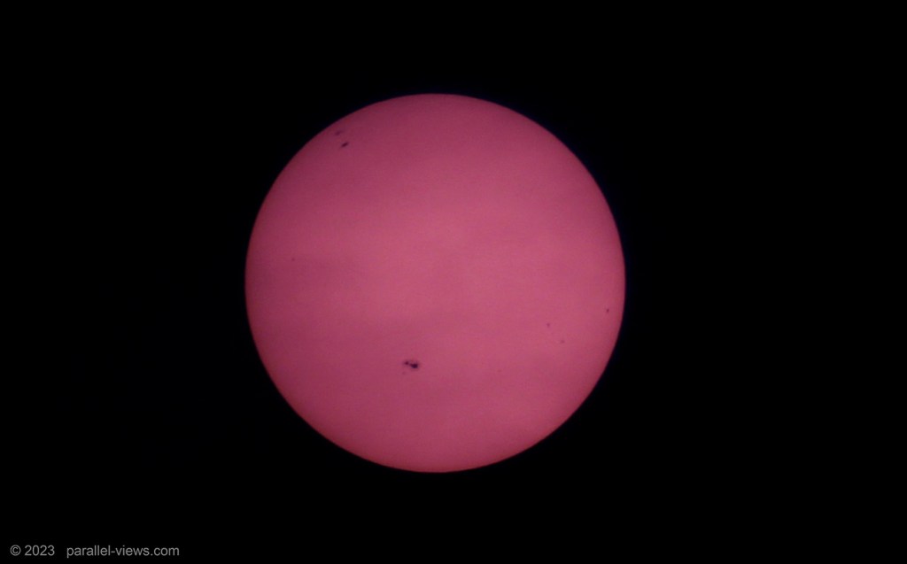 The sun looks pink here, as my camera has real trouble finding a good white balance with such a narrow range of light. If you’re curious, though, here is a more neutral white balance set on the computer.
